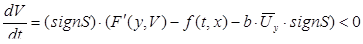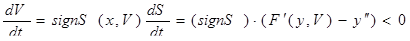 где 3.2.3 Проверка устойчивости движения к поверхности переключенияНеобходимо обеспечить устойчивость движения относительно поверхности переключения. Для проверки этого условия воспользуемся вторым методом Ляпунова. Выберем функцию Ляпунова –