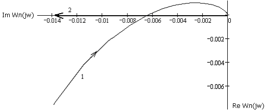 Рис.3.22. АФХ линейной части КБД (1) и обратная АФХ нелинейного элемента (2) Точка пересечения АФХ Wл