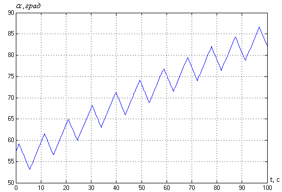 Рис. 3.28 График угла наклона шиберов при действии возмущения