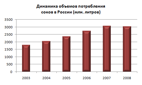 Среднее потребление сока на душу населения в целом по России в 2008 составило около 20 литров в год, за последние годы оно впервые сократилось. В то время как в США этот показатель равен 60 литрам на человека, в странах Западной Европы потребление соков составляет 30 литров на человека. Потенциал развития рынка соков, прежде всего, зависит от потребления их в регионах за пределами Москвы и Санкт-Петербурга. На данный момент в других городах России соков выпивают в среднем по 15 литров на человека. В Москве и Санкт-Петербурге уровень потребления сопоставим с европейским, что подтверждает насыщенность рынка в центральной части Российской Федерации, это предопределяет дальнейшее расширение деятельности ведущих производителей путем более плотного их взаимодействия с региональными рынками. Примерно 40 и 35 литров соков было выпито в 2008 году (из расчета на одного человека) в Москве и Петербурге, соответственно. 2. Анализ конкурентов. На российском рынке в массовом сегменте на сегодняшний день 4 сильных игрока: ТМ «Добрый» (Мултон), ТМ «Фруктовый сад» (Лебедянский), ТМ «Моя семья» (Нидан), ТМ «Любимый сад» (WBD). Лидирующие позиции занимает ТМ «Добрый», что обусловлено четким позиционированием. Сок «Добрый» — поистине «народный» продукт и безусловный лидер рынка. Его знают и любят все. Ему доверяют. В России более 70 млн. человек пьют соки, морсы и нектары «Добрый», причем 30 миллионов предпочитают их всем другим маркам. «Добрый» — это сбалансированный натуральный вкус, простое название, качественная упаковка, привлекательная цена и, главное, постоянные инновации. В 2004 году «Добрый» впервые выпустил линейку морсов для массового рынка, а летом 2006 года приятно удивил потребителей сезонным вкусом «Добрый арбуз», на следующий год появился новогодний «Добрый Подарок» из ягод и винограда в стиле глинтвейн. Затем линейка функциональных продуктов под маркой «Добрый» была расширена нектарами, обогащенными натуральными экстрактами ягод и трав. В 2008 году «Добрый» выпустил в продажу очередную новинку — холодные чаи. И тогда же, в 2008 году, вошел в пятерку лидеров списка «50 лучших российских брендов всех категорий», составленного журналом Forbes. ТМ «Моя семья» - Соки и нектары «Моя Семья» были впервые представлены на рынке в 2001 году и сумели очень быстро завоевать симпатии потребителей, став одним из лидеров российского рынка соков. По последним оценкам исследовательских агентств, торговая марка «Моя семья» известна более 65% населения страны, потребляющего соки, а свои потребительские предпочтения ей отдают около 20 млн. российских граждан. Основной показатель успеха – широкая рекламная кампания, которая полюбилась телезрителям своими героями. ТМ «Любимый сад» - бренд начал свою историю в 1999 году. В условиях конкурентной борьбы, в 2004 году произошло репозиционирование бренда, и итогом стала новая концепция с основными ценностями: забота о близких, прежде всего о детях, общение с друзьями и близкими людьми. Конкурентные преимущества ТМ «Фруктовый сад» 1) Высокий уровень качества; 2) Стабильность вкусовых характеристик; 3) Массовая доступность продукта; 4) Яркая упаковка. Основная позиция бренда «Фруктовый сад» по отношению к конкурентам: Ценовое позиционирование: основано на основной концепции бренда – массовая марка, которая сочетает вкус и пользу натура