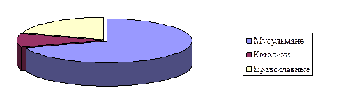 1.2 Политическое устройство и демографические показатели Республики Албания В соответствие с Конституцией, вступившей в силу в ноябре 1998 г., Албания является парламентской республикой. Глава государства – президент, избираемый парламентом на 5 лет (в данный момент – Бамир Топи). Единственным законодательным органом является однопалатный парламент (Кувенд). Кувенд состоит из 140 депутатов, избираемых путём всеобщих выборов сроком на 4 года (последние выборы – июль 2005 года). Высший исполнительный и распорядительный орган – Совет министров. Председатель – С. Бериша (с 10 сентября 2005г.). Административно-территориальное деление: территория Республики Албания разделена на 12 округов и 36 префектур. Население страны – 3600523 человека (июль 2007 г.). Средняя плотность населения – 122 человека / км2 [2,31]. Наиболее густо заселены прибрежные районы и горные долины. К слабозаселённым относятся горные районы на востоке и северо-востоке страны (см. приложение 1, рис. 1). Албанию можно причислить к однонациональным государствам: 95% населения составляют албанцы, греки – около 3%, другие национальности (в основном, сербы, болгары, цыгане) – 2% [19]. Большое число албанцев в средние века эмигрировало в Италию и Грецию, позже – в Турцию, создав там свои диаспоры. Сейчас в мире проживает около 7 млн. албанцев, при чём из них только 50% в самой Албании. Албанцы делятся на 2 этнокультурные группы – геги и тоски. Геги проживают к северу от реки Шкумбини (составляют около 2/3 всех албанцев), а тоски – к югу от реки Шкумбини (1/3 общей численности). Официальный язык в стране – албанский (тоскский диалект). В 1967г. все мечети и церкви были закрыты и религиозные обряды запрещены, однако в 1990г. в стране вновь была разрешена религиозная деятельность. Большинство верующих - мусульмане (70%), приверженцы православной церкви составляют 20%, римско-католической - 10% (см. рис. 1).