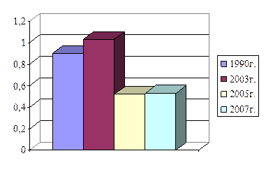 Рис. 2 Динамика численности населения Албании Рассчитано по: [2,31], [15],[19] Среднегодовой естественный прирост в Албании колебался от 0,9% в год с 1990 по 1995 до 1,03% в 2003, а в 2004 составил всего 0,51% [15]. В 2007 году естественный прирост населения в Албании составил – 0,5 (см. рис. 3).