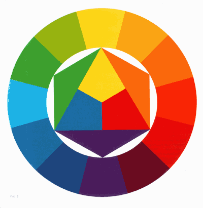 Основные цвета должны быть определены с максимально возможной точностью. Три основных цвета первого порядка размещаются в равностороннем треугольнике так, чтобы жёлтый был у вершины, красный справа внизу и синий - внизу слева. Затем данный треугольник вписывается в круг и на его основе выстраивается равносторонний шестиугольник. В образовавшиеся равнобедренные треугольники мы помещаем три смешанных цвета, каждый из которых состоит из двух основных цветов, и получаем, так разом, цвета второго порядка: жёлтый + красный = оранжевый жёлтый + синий = зелёный красный + синий = фиолетовый. Все цвета второго порядка должны быть смешаны весьма тщательно. Они не должны склоняться ни к одному из своих компонентов. Запомните, что это нелёгкая задача - получить составные цвета посредством их смешения. Оранжевый цвет не должен быть ни слишком красным, ни слишком жёлтым, а фиолетовый - ни слишком красным и ни слишком синим. Затем на некотором расстоянии от первого круга мы чертим другой и делим полученное между ними кольцо на двенадцать равных частей, размещая основные и составные цвета по месту их расположения и оставляя при этом между каждыми двумя цветами пустой сектор. В эти пустые сектора вводим цвета третьего порядка, каждый из которых создаётся благодаря смешению цветов первого и второго порядка, и получаем: жёлтый + оранжевый = жёлто-оранжевый красный + оранжевый = красно-оранжевый красный + фиолетовый = красно-фиолетовый синий + фиолетовый = сине-фиолетовый синий + зелёный = сине-зелёный жёлтый + зелёный = жёлто-зелёный. Таким образом, возникает правильный цветовой круг из двенадцати цветов, в котором каждый цвет имеет своё неизменное место, а их последовательность имеет тот же порядок, что в радуге или в естественном спектре (рис.3). Исаак Ньютон в своё время получил этот замкнутый цветовой круг, в который он добавил к спектральным цветам отсутствующий пурпурный цвет, что усилило общую его конструктивность. В нашем круге все двенадцать цветов имеют равные отрезки, поэтому цвета, занимающие диаметрально про-тивоположные места по отношению друг другу, оказываются дополнительными. Эта система даёт возможность мгновенно и точно представить себе все двенадцать цветов и легко расположить между ними все их вариации. Мне кажется, что для художников было бы пустой потерей времени заниматься составлением цветового круга из 24-х или 100 цветов. Да и какой же художник может без посторонней помощи отчётливо представить себе, например, 83 градацию цветового круга, разделенного на 100 частей? Поскольку наши представления о цвете не отличаются особой точностью, обсуждать этот вопрос бесполезно. И необходимо просто видеть двенадцать цветов с той же определённостью, с какой музыкант слышит двенадцать тонов своей гаммы. Делакруа прикрепил к одной из стен своей мастерской цветовой круг, на котором около каждого цвета были даны все сочетания, возможные сданным цветом. Импрессионисты, Сезанн, Ван Гог, Синьяк, Сера и другие художники ценили Делакруа как выдающегося колориста. И именно Делакруа, а не Сезанн, считается основателем конструирования произведений на основе логически объективных цветовых законов, позволяющих достичь тем самым более высокой степени порядка и правды. Контраст светлого и темного День и ночь, свет и тень. Эти противоположности имею