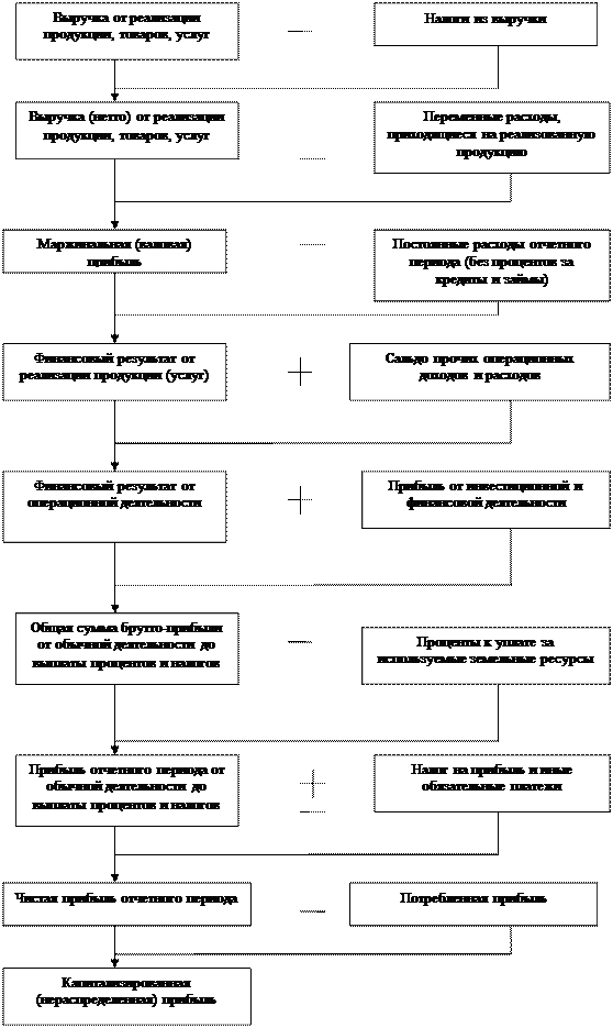 Рисунок 2. Зависимость величины суммы прибыли от различных факторов Для повышения эффективности производства очень важно, чтобы при распределении прибыли была достигнута оптимальность в удовлетворении интересов государства, предприятия и работников. Руководство предприятия стремится направить большую сумму прибыли на расширение производства, работники заинтересованы в повышении их доли в использовании прибыли, а государство стремится получить как можно больше прибыли в бюджет. В процессе анализа необходимо изучить факторы изменения величины налогооблагаемой прибыли, суммы выплаченных дивидендов, процентов, налогов из прибыли, отчислений в фонды предприятия. Основными источниками информации при анализе финансовых результатов прибыли служат накладные на отгрузку продукции, данные аналитического бухгалтерского учета по счетам результатов, финансовая отчетность ф.2 «Отчет о прибылях и убытках», а также соответствующие таблицы плана предприятия. 1.2 Методика анализа использования чистой прибыли В процессе анализа необходимо изучить данные об использовании чистой прибыли в динамике и выяснить факторы, определяющие распределение прибыли. Дальнейший анализ должен показать, насколько и за счет каких факторов изменилась величина основных направлений использования прибыли. Основными факторами, определяющими размер капитализированной и потребляемой прибыли, могут быть[3] : · изменение суммы чистой прибыли (ЧП); · изменение доли соответствующего направления использования чистой прибыли (Дотч):