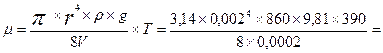 Задача №3 Определить динамическую (кинематическую) вязкость нефти ρ=860 кг/м3 , если известно, что 200 мл этой нефти вытекает из камеры вискозиметра, через вертикальный цилиндрический капилляр с внутренним диаметром 2 мм за 6,5 мин (390 сек). Решение. Для выражения динамической (кинематической) вязкости может быть использована формула, для определения расхода ламинарного течения вязкой жидкости в горизонтальной трубе, происходящего под действием силы тяжести. Объемный расход