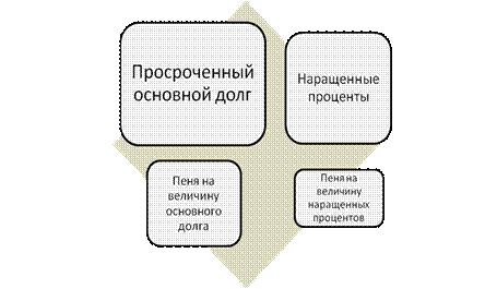 Рис 8. Структура просроченной задолженности Особой разновидностью просроченной задолженности является «NPL[13] 90+». Просроченная задолженность по потребительским кредитам любого вида переходит в разряд «NPL 90+» в случае отсутствия каких-либо денежных поступлений в оплату основного долга в течение 90 дней и свыше. По истечении трёх месяцев со дня образования просроченной задолженности по кредиту задолженность считается безнадёжной к взысканию. Инкассирование кредитных средств представляет собой процесс аккумулирования денежных средств на специальных счетах заёмщиков с целью их списания в счёт погашения задолженности по основному долгу, наращенным процентам и начисленным пени. Несостоятельный заёмщик представляет собой физическое лицо, получившее любой потребительский кредит (целевой или нецелевой) и по ряду субъективных или объективных причин не выплачивающее его в установленные кредитным договором сроки. Недобросовестный заёмщик представляет собой физическое лицо, получившее любой потребительский кредит (целевой или нецелевой) и по ряду субъективных причин не выплачивающее его в установленные кредитным договором сроки. Добросовестный заёмщик представляет собой физическое лицо, получившее любой потребительский кредит (целевой или нецелевой) и имеющее возможность и желание выплатить его в установленные кредитным договором сроки, либо досрочно. Основными этическими требования к заёмщику являются честность, ответственность, дисциплинированность. Добросовестный заёмщик наделён совестью, которая является естественным этическим регулятором кредитных взаимоотношений, основанных на доверии. Таким образом, добросовестный заёмщик представляет собой физическое лицо, получившее любой потребительский кредит (целевой или нецелевой) и имеющее возможность и желание выплатить его в установленные кредитным договором сроки, либо досрочно. Кроме того, он стремиться создать доверительные отношения с банком за счёт наличия совести как естественного этического регулятора кредитных взаимоотношений. 3.2 Проектирования системы защиты кредитных ресурсов банкаот недобросовестных заёмщиков с учётом этических требованийПрикладное значение концепция добросовестного заёмщика находит в предлагаемой нами системе защиты кредитных ресурсов банка с учётом этических требований. Принципиальная схема системы защиты кредитных ресурсов банка от недобросовестных заёмщиков с учётом этических требований представлена на рисунке 9.