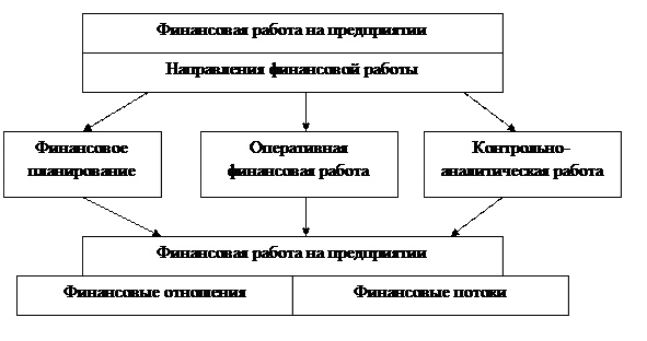1.2 Характеристика основных направлений финансовой работы современного предприятия Предметом финансовой работы на предприятии являются финансовые отношения и финансовые потоки[3] . А именно: построение рациональных схем отношений предприятия с партнерами по бизнесу и со всеми финансовыми институтами государства, как обязательной предпосылки формирования его первичных доходов, а также обеспечение достаточности финансовых потоков, своевременности и синхронизации их, как обязательных предпосылок финансового равновесия предприятия, его финансового благополучия. Возможные направления воздействия на финансовые отношения и финансовые потоки принято представлять тремя укрупненными группами: · финансовое планирование; · оперативная финансовая работа; · контрольно-аналитическая работа. Рис. 1. Направления и предмет финансовой работы на предприятии