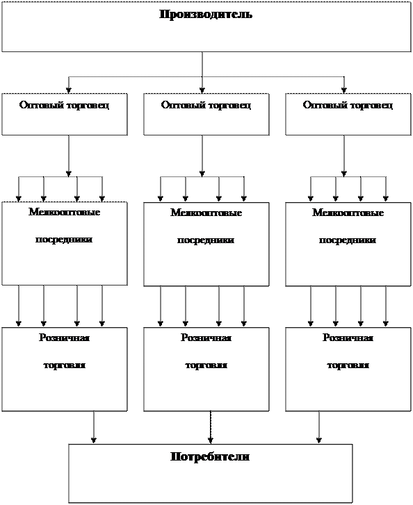 Косвенный канал третьего уровня. Рисунок №1. Пример длины каналов сбыта.