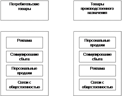 Рисунок № 6. Формирование стратегии продвижения товара на рынке. На рисунке № 7 показана сравнительная значимость различных элементов продвижения продуктов на рынке товаров производственного и потребительского назначения. Как видно из рисунка № 7, соотношение различных методов