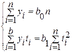 Для вычисления параметров тренда воспользуемся методом наименьших квадратов. Оптимизация данного метода состоит в минимизации суммы квадратов отклонений фактических уровней ряда от выровненных уровней. Для каждого типа тренда МНК даёт систему нормальных уравнений, разрешив которую вычисляются параметры тренда. Разрешающая система нормальных уравнений метода аналитического выравнивания по прямой имеет вид: