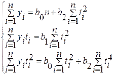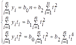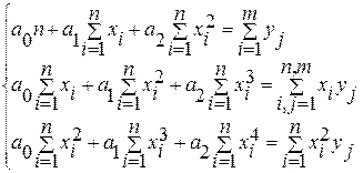 Разрешающая система нормальных уравнений метода аналитического выравнивания по параболе имеет вид: