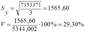 Поскольку величина корреляционного отношения близка к единице и находится в интервале Таблица 2.9 Впомогательная таблица для расчёта дисперсий связи Х и V
