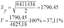 Так как основной целью аналитического выравнивания является экстраполяция, следовательно, требуется выяснить какое из уравнений прямой или параболы – лучше описывает тенденцию динамики среднесписочной численности работников, для этого рассчитаем среднюю квадратическую ошибку уравнения тренда и коэффициент вариации: