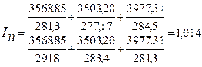 Проверка: 1,06 = 0,49 + 0,58; 1,06 = 1,06 Вывод: в 2010 г. по сравнению с 2009 г. производительность труда по всем трём предприятиям возросла на 1,06 тыс. грн, в том числе за счёт роста объёма СМР на 0,49 тыс. грн. и сокращение численности работников на 1 чел. Рассчитаем индексы переменного, постоянного состава и индекс структурных сдвигов по следующим формулам, представленным в таблице 1.13 Таблица 1.13