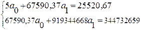 Применяя метод наименьших квадратов, получим разрешающую систему уравнений: