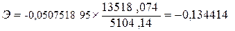 Следовательно, зависимость между признаками Х и Y, Y и V, а также Х и V не выявилась существенной. Коэффициент регрессии применяется для определения коэффициента эластичности, который показывает, на сколько процентов изменится величина результативного признака при изменении признака-фактора на 1%. Коэффициент эластичности рассчитывается по формуле: