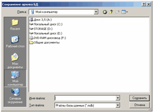 Рисунок 7.26 - Выбор пункта меню "Файл" В результате Вам будет предложен диалог для указания места копирования и задания имени файла базы данных: