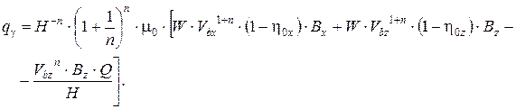 Рисунок 9– Плоская модель канала шнека 4) канал полностью заполнен полимерным материалом; 5) теплофизические характеристики расплава полимера не зависят от температуры, температурная зависимость коэффициента консистенции подчиняется уравнению Рейнольдса; 6) течение расплава является установившимся во времени и по длине канала; 7) расплав – неупругая несжимаемая псевдопластичная жидкость, реологическое поведение которой описывается степенным уравнением Оствальда-де’Вилье; 8) течение расплава – ламинарное, течение в радиальном направлении (по глубине канала) отсутствует, пристенные эффекты малы. 9) утечки расплава через радиальные зазоры между корпусом и шнеком пренебрежимо малы; 10) на стенках канала выполняются условия прилипания расплава; 11) давление не изменяется по глубине канала; 12) массовые силы пренебрежимо малы по сравнению с силами вязкого трения; 13) вдоль оси канала шнека преобладает конвективный механизм переноса тепла; 14) температура расплава по ширине и глубине канала изменяется незначительно вследствие интенсивного циркуляционного течения. С учетом принятых допущений структура математической модели экструдера, полученная на основе аналитического решения системы уравнений несжимаемости, движения, энергии и реологической модели материала методом моделирующих потоков, имеет вид: