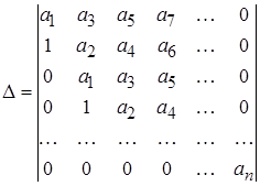 Формулировка критерия устойчивости Гурвица: (в алгебре критерий Рауса-Гурвица) цепь будет устойчивой, если определитель: