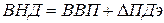 = ВВПв основных ценах = В - ПП+ ЧНПИ. Распределительным методом (на стадии распределения). ВВП определяется как сумма первичных доходов, распределенных производственными единицами-резидентами между непосредственными участниками процесса производства товаров и услуг, т.е. как сумма расходов производителей-резидентов на оплату труда наемных работников — резидентов и нерезидентов, выплаченных ими чистых налогов на производство и импорт, а также их валовой прибыли и валовых смешанных доходов. Валовая прибыль и валовые смешанные доходы представляют собой часть валовой добавленной стоимости, оставшуюся у производителей после вычитания расходов, связанных с оплатой труда и уплатой налогов. Формула расчета ВВП распределительным методом имеет вид ВВП = ОТ + ЧНПИ +ВПЭ = ОТ + (НПИ – Сп.и) + ВПЭ, где ОТ – оплата труда наемных работников; ЧНПИ – чистые налоги на производство и импорт; Сп.и – субсидии на производство и импорт; ВПЭ – валовая прибыль экономики. Валовая прибыль и валовые смешанные доходы в СНС определяются балансовым методом как разность между ВВП, рассчитанным производственным методом, и другими видами первичных доходов Доплата труда, чистые налоги на производство и чистые налоги на импорт. Поэтому данный метод не используется для определения объема ВВП, а применяется в основном для анализа процесса распределения валовой добавленной стоимости между ее производителями, состава и структуры доходов, доли различных видов первичных доходов в ВВП. Методом конечного использования (на стадии конечного использования) ВВП рассчитывается как сумма конечного, потребления товаров и услуг и валового накопления с учетом сальдо экспорта и импорта товаров и услуг, что можно выразить следующей формулой: ВВП = РКП + ВН + (Э - И) + СР, где РКП – расходы на конечное потребление товаров и услуг; ВН – валовое накопление; (Э-И) – сальдо экспорта и импорта товаров; СР – статистическое расхождение. Валовой внутренний продукт, рассчитанный на стадии конечного использования, равен сумме расходов на приобретение предназначенных для конечного использования (конечного потребления и накопления) товаров и услуг в ценах потребления и чистого экспорта товаров и услуг. Расходы на конечное потребление подразделяют на расходы домашних хозяйств, государственных (бюджетных) учреждений и расходы некоммерческих организаций, обслуживающих домашние хозяйства. Кроме того, в расходах на конечное потребление выделяют расходы на товары, индивидуальные услуги и коллективные услуги. Валовое накопление включает валовое накопление основного капитала, изменение запасов материальных оборотных средств и чистое приобретение (т. е. приобретение за вычетом реализации) ценностей. Исчисление ВВП данным методом позволяет провести анализ основных пропорций использования ВВП и определить долю стоимости товаров и услуг, использованных для удовлетворения потребностей конечных потребителей и для увеличения национального богатства страны. Пример Проиллюстрируем расчет ВВП методом конечного пользования на основе следующих (условных) данных: расходы на конечное потребление (РКП) 1574,6 валовое накопление (ВН) 496,1 экспорт товаров и услуг (Э) 531,5 импорт товаров и услуг (И) 444,7 статистическое расхождение (СР) 42,7 Решение. Валовой внутренний продукт методом конечного использован