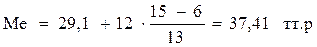где хМе – нижняя граница медианного интервала, h – величина медианного интервала,