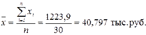 = 32,62% не превышает 33,3% следовательно, вариация денежного дохода в среднем на одного члена домохозяйств в исследуемой совокупности фирм незначительна и совокупность по данному признаку однородна. Расхождение между значениями 4. Вычисление средней арифметической по исходным данным о денежном доходе в среднем на одного члена домохозяйства. Для расчета применяется формула средней арифметической простой: