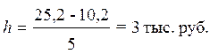 где При заданных k = 5, xmax = 77,1 тыс. руб. и xmin = 17,1 тыс. руб. h