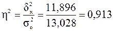 Вывод. 91,3% вариации расходов на продукты питания в среднем на одного члена домохозяйства обусловлено вариацией денежного дохода, а 8,7% – влиянием прочих неучтенных факторов. Эмпирическое корреляционное отношение