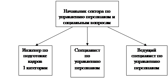 СЖА по облуживанию пассажиров имеет линейно-функциональный тип организационной структуры, так как оно состоит из: · линейных подразделений, имеющих большое территориальное разделение: Омский, Новосибирский, Кузбасский, Алтайский производственные участки по оформлению документов и участки по переработке и перевозке багажа и грузобагажа. · специализированных обслуживающих функциональных подразделений: пассажирские перевозки и багажные перевозки, которые не взаимодействуют между собой. Такая организационная структура наиболее эффективна в СЖА по обслуживанию пассажиров, где аппарат управления выполняет часто повторяющиеся, стандартные процедуры и имеет ряд преимуществ: · быстрое осуществление действий по распоряжениям и указаниям, отдающимся вышестоящими руководителями нижестоящим, · рациональное сочетание линейных и функциональных взаимосвязей; · стабильность полномочий и ответственности за персоналом. · единство и четкость распорядительства; · оперативное принятие и выполнение решений; · личная ответственность каждого руководителя за результаты деятельности; · высокая компетентность функциональных руководителей; · высокая эффективность при небольшом разнообразии продукции и рынков; · максимальная адаптация к диверсификации производства; · формализация и стандартизация процессов; Как можно увидеть из структурной схемы СЖА по обслуживанию пассажиров, численность персонала на всех производственных участках разнообразна. Например, на Омском производственном участке по переработке и перевозке багажа и грузобагажа работают 54 чел., а на Новосибирском производственном участке по переработке и перевозке багажа и грузобагажа 182 чел. Такая разница объясняется разным лимитом численности для каждого участка, который составляется на основе штатного расписания и зависит от количества станций и объема работ для каждого участка. Численность персонала на производственных участках не превышает нормы управляемости, поэтому все специалисты справляются с объемом работ. На каждом производственном участке работает специалист по управлению персоналом, основными задачами которого являются: обеспечение реализации единой социальной политики управления персоналом, совершенствование форм и методов работы с персоналом и ветеранами, обобщение и распространение передового опыта работы, документирование кадровой деятельности, учет движения кадров и составление отчетности. Специалисты по управлению персоналом всех производственных участков взаимодействуют с сектором по управлению персоналом и социальными вопросами в Новосибирске. Рис.6 - Структура сектора по управлению персоналом и социальным вопросам.