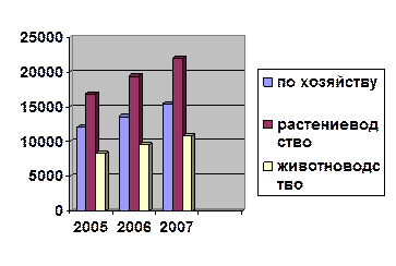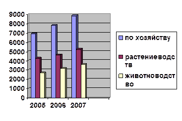 Источник: Собственная разработка Проанализировав данные таблицы 2.1, можно сделать вывод о том, что в основном по изучаемым показателям на протяжении трех лет наблюдается положительная динамика. Так, в 2007 году по сравнению с 2006 годом увеличилась стоимость валовой продукции в целом по хозяйству (2006 г. – 7841 млн. руб., 2007 г. – 8866 млн. руб.) и по отраслям в частности, а именно, стоимость валовой продукции растениеводства увеличилась на 616 млн. руб., что составляет 13,2%, стоимость валовой продукции животноводства – на 409 млн. руб., что составляет 12,9%. Выход валовой продукции на 1 работника в 2007 году возрос на 3617314 руб. или 12,2% по сравнению с 2006 годом. Для наглядного представления динамики стоимости валовой продукции построим диаграмму (рис. 2.1).