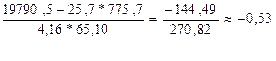 Уравнение примет вид: Ух = 1058,4 - 11х При линейной зависимости тесноту связи определим с помощью коэффициента корреляции по формуле: r = где: х и у- среднее значение признаков; sх и sу – среднее квадратическое отклонение факторного и результативного признаков соответственно;