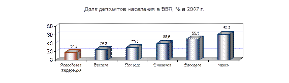 Рис. 1.4. Сравнительные показатели развития розничного сектора депозитов в Российской Федерации и странах Центральной Европы. Составлено по источнику: [32]
