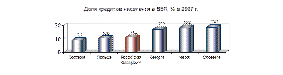 Рис. 1.5. Сравнительные показатели развития розничного сектора кредитов в Российской Федерации и странах Центральной Европы. Составлено по источнику: [32]