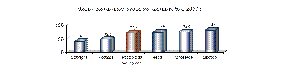 Рис. 1.6. Сравнительные показатели развития розничного банковского бизнеса с использованием пластиковых карт в Российской Федерации и странах Центральной Европы. Составлено по источнику: [32]