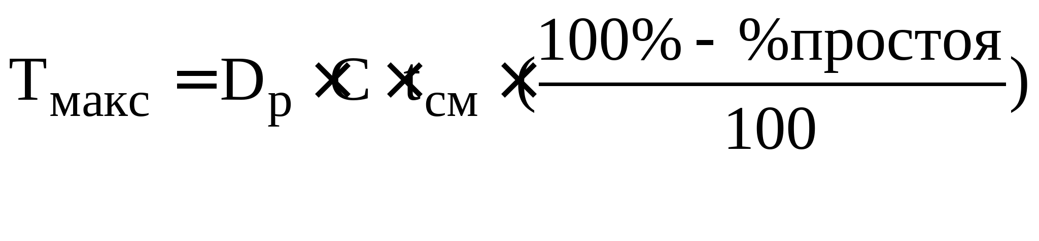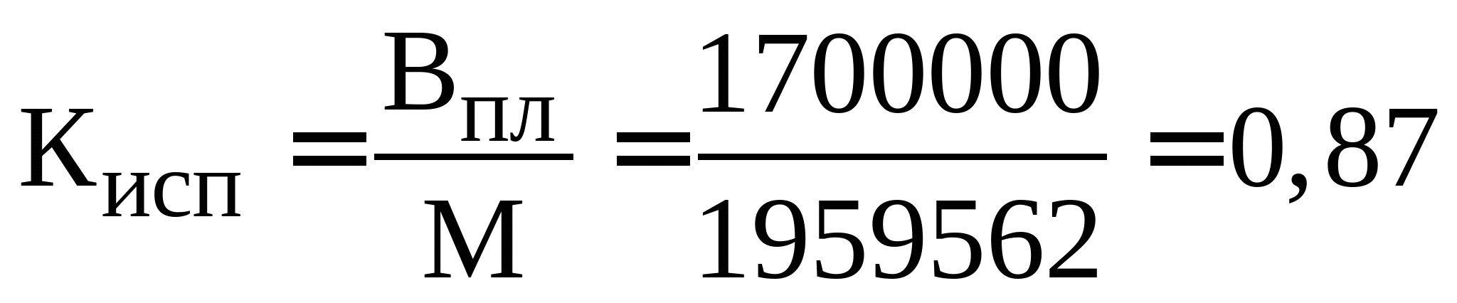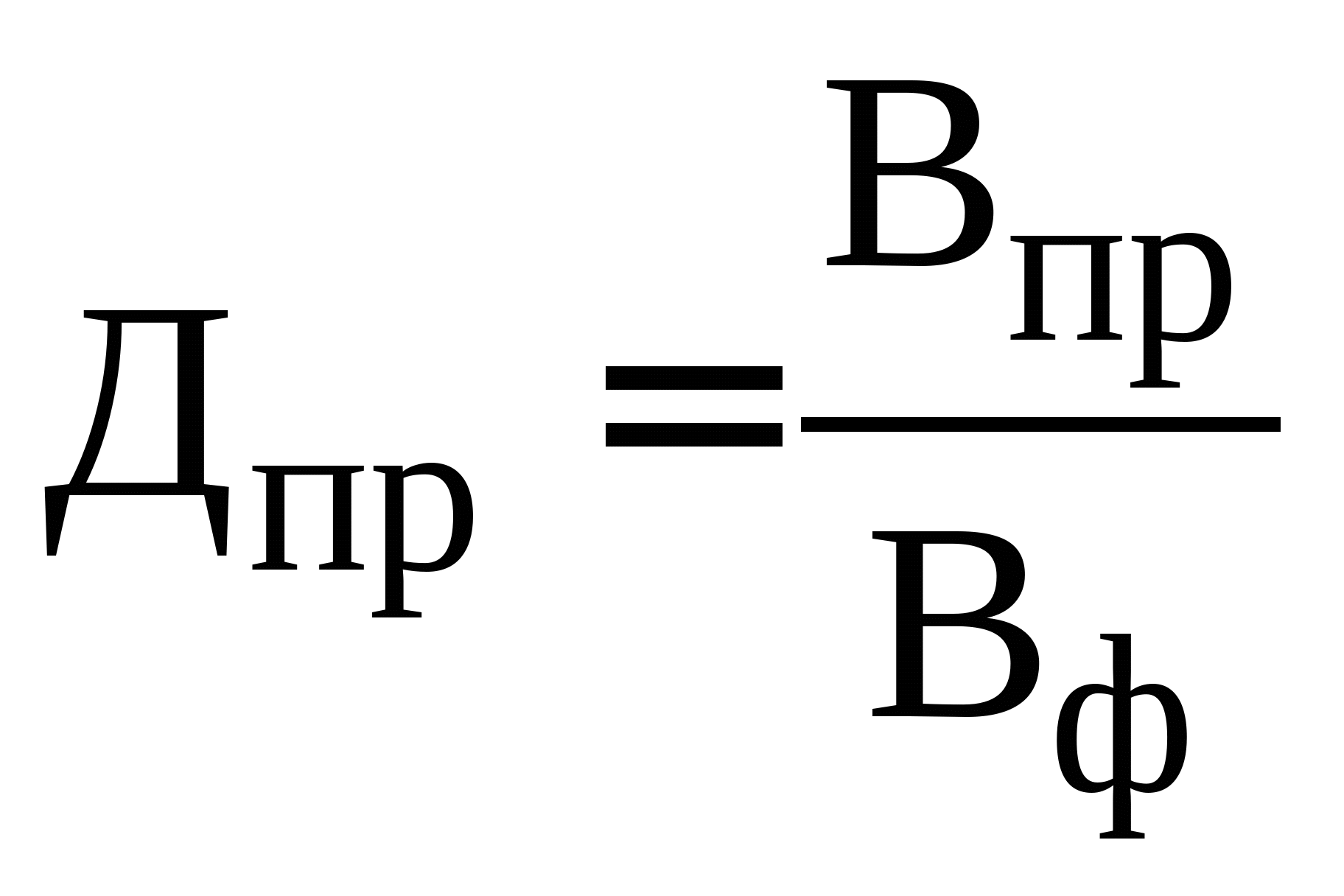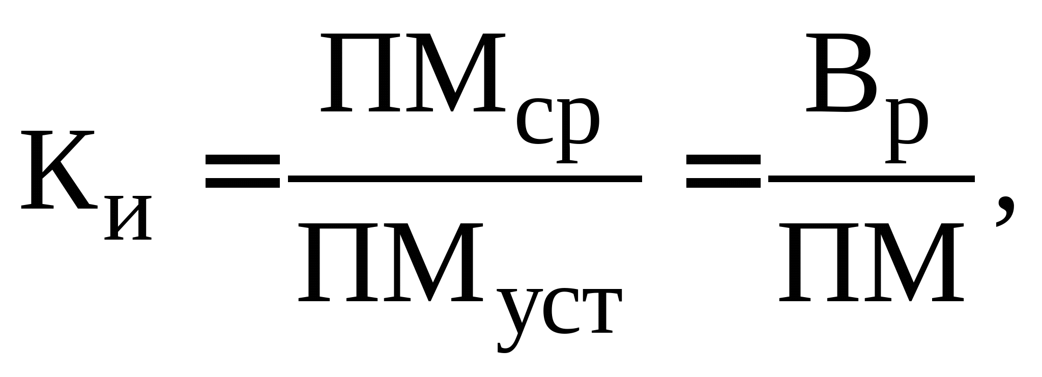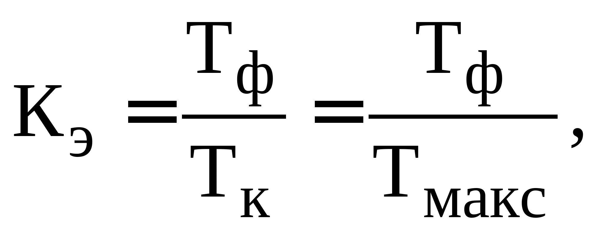 - коэффициент экстенсивного использования площадей, отражает отношение времени фактических работ цеха или участка в течение года к максимально возможному (нормативному) времени, где Др – количество рабочих дней в году, Чнор – нормативная продолжительность работ в течение суток, а Чф – фактическая.