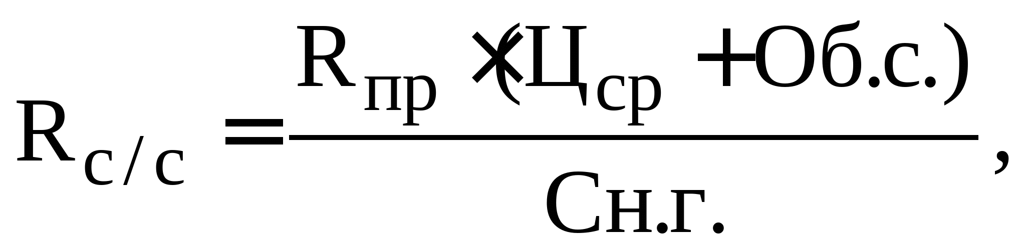 Cn – плановая с/с 1 продукции, Rс/с – уровень рентабельности, рассчитанный по с/с, то есть это удельная прибыль, получаемая от реализации годового объема продукции, приходящейся на 1 рубль затрат.