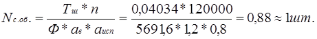где Тш – штучное время на одно изделие, Н*ч; n=12000шт. – годовая программа выпуска изделия; ав – коэффициент выполнения норм выработки, принимается =1,2; аисп. – коэффициент использования сварочного оборудования; аисп. =0,8 (для массового производства) Ф – действительный годовой фонд времени работы сварочного оборудования;