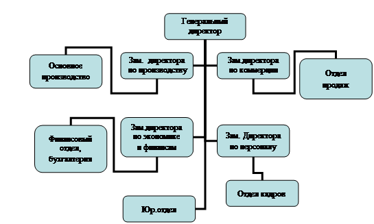 Рис. 2. Организационная структура ЗАО НЗМК «ТЕМ-ПО» Во главе ЗАО НЗМК «ТЕМ-ПО» стоит генеральный директор. Целью его деятельности является организация работы и эффективного взаимодействия служб управления и производственных подразделений для обеспечения прибыльной работы предприятия. У генерального директора есть четыре зам. директора и юрисконсульт, которые подчиняются ему и предоставляют ему всевозможные отчеты по результатам деятельности различных отделов. Каждое структурное подразделение имеет свои цели и решает свои конкретные задачи. Основными задачами отдела продаж является сбытовая деятельность, а именно: осуществление рекламной деятельности, поиск каналов сбыта, заключение договоров, и т.д. Отдел кадров осуществляет: поиск и наем работников для удовлетворения потребностей производства, обеспечивает контроль уровня качественного и количественного состава персонала, организацию обучения (повышение квалификации) персонала в соответствии с производственной необходимостью и т.д. При ведении бухгалтерского учета имущества, обязательств и хозяйственных операций способом двойной записи в организации используют рабочий план счетов бухгалтерского учета, который соответствует Плану счетов бухгалтерского учета финансово-хозяйственной деятельности организаций и Инструкцией по его применению.
