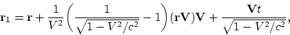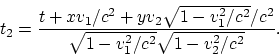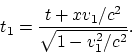 Отсюда видно следующее: В рассмотренном ранее примере можно поступить по-другому: будем искать последовательность трех преобразований скоростей, сохраняющую первоначальное время в преобразованиях Лоренца неизменным. Тогда легко проверить, что вместо (1.7) может быть взята единственная последовательность:
