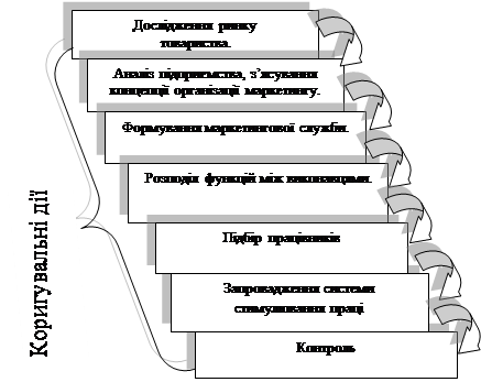 На думку експертів ринок реклами втратить приблизно 14 % свого об’єму і буде складати 10 млн.грн. Тоді як у 2008р. цей показник перевищував 11,5 млн.грн [14 ]. Нова форма прямого маркетингу - дозволений маркетинг (permission marketing), коли компанія відправляє інформацію з просування тільки споживачам, які дають на це дозвіл. Дозволений маркетинг може здійснюватися через Інтернет, телефон або пряме поштове розсилання. Етапи дозволеного маркетингу такі: · одержати дозвіл від замовника; · запропонувати споживачеві програму на певний час; · підсилити спонукальну причину, щоби продовжувати взаємини; · збільшити рівень дозволу; · здійснити вплив на дозвіл, щоби принести зиск обом сторонам. Програма частоти маркетингового звернення (freguency program) — це спонукальний план, що розробляється, аби примусити замовників робити повторну купівлю. Коли існує паритет торговельної марки, такий як, наприклад, в авіатран-спортній індустрії, програма постійних клієнтів править для заохочування до повторення бізнесу. Існують різні причини для розроблення програм частоти маркетингового звернення, зокрема: · підтримка продажу, прибутку або доходів; · зростання лояльності наявних клієнтів; · надання переважного права купівлі або протиставлення частотній програмі конкурента; · стимулювання перехресного продажу для наявних замовників; · диференціювання рівноцінних торговельних марок; · попередження входження нової торговельної марки. Компанії розробляють програми частоти маркетингового звернення з двох причин. Перша — розвивати лояльність клієнтів. Друга — протистояти або здобувати переважне право від інших конкурентів. Утримання замовників створює повторні купівлі та уможливлює перехресний продаж інших товарів і послуг. Для побудови лояльної програми використовують три принципи. Перший — розробляти програму, щоби збільшити цінність продукту. Другий - обчислювати повну вартість програми. Третій — розробляти програму, яка б максимізувала споживчий мотив здійснити наступну купівлю. Програми частоти маркетингового звернення також використовуються у підприємницькому секторі. Успішні програми залежать від бази даних компанії, у якій збирається і зберігається інформація про купівлі. Нова технологія, що використовує магнітну картку, є корисною для багатьох компаній. Цілі програм частоти маркетингового звернення добре сумісні з елементами більшості планів інтегрованих маркетингових комунікацій [ 10 ]. 1.3 Організація маркетингової роботи на підприємстві Важливе місце в ринкових відносинах належить маркетингу саме у сфері виробничого і торгівельного бізнесу, оскільки тут стоїть питання реалізації товару (продукції) та послуг. Успішна маркетингова діяльність у цих сфера дає змогу отримувати високі результати. Маркетингова діяльність саме у цих галузях повинна забезпечити: - надійну, достовірну і своєчасну інформацію про ринок, структурі і динаміці конкретного попиту, смаках і перевагах покупців, тобто інформацію про зовнішні умови функціонування фірми; - створення такого товару, набору товарів (асортименту), що більш повно задовольняє вимогам ринку, чим товари конкурентів; - необхідний вплив на споживача, на попит, на ринок, що забезпечує максимально можливий контроль сфери реалізації. Ефективна маркетингова діяльність підприємства неможлива без ор