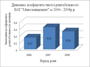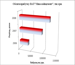 Як видно з наведених в табл. 2.4. показників, співвідношення темпів зростання основних абсолютних характеристик ділової активності товариства є оптимальним . ( 264,8 > 167,36 > 137,25 > 100% ), а саме економічний потенціал товариства покращується; на кожну гривню додатково вкладеного капіталу товариство отримує більше, ніж одну гривню віддачі; темпи зростання прибутку перевищують темпи зростання доходу. Таблиця 2.6. Динаміка загальних показників господарської діяльності ВАТ "Миколаївцемент" 2007-2008рр.