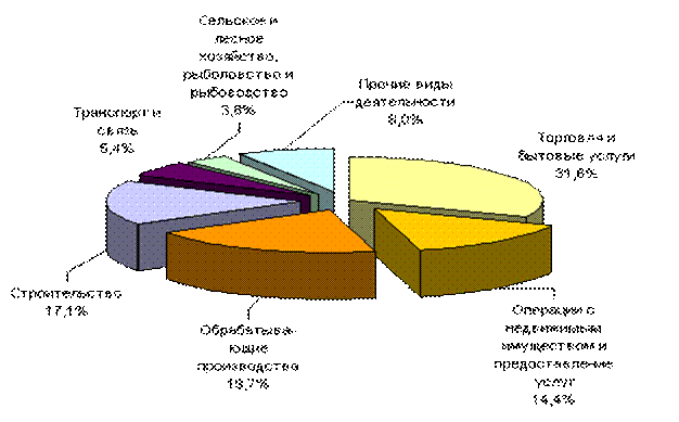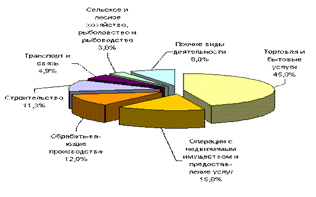 Рисунок 1. Общее число малых предприятий РФ по видам экономической деятельности, 2009 год, в процентах ПРИЛОЖЕНИЕ 2