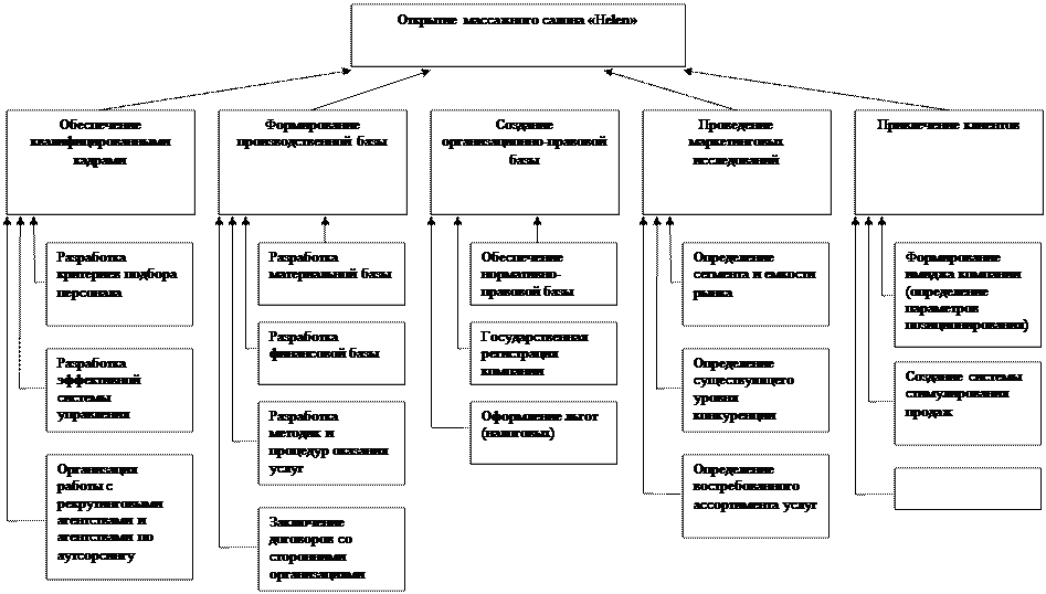 Согласно Рисунку 1, генеральной целью проекта является – открытие массажного салона «Helen». Для реализации генеральной цели проекта необходимо осуществить цели более низкого уровня: