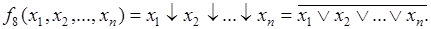 Используя операции суперпозиции и подстановки, можно показать, что операция Пирса может быть реализована для n аргументов: f