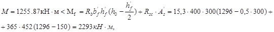 - граница сжатой зоны проходит в пределах верхнего пояса балки и сечение рассчитываем как прямоугольное высотой 7.2.4