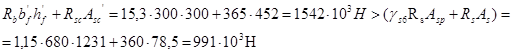 следовательно, нижняя граница сжатой зоны проходит в пределах верхнего пояса балки 3.4