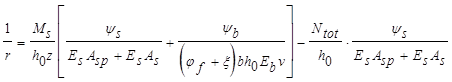 - кривизна, обусловленная выгибом элемента вследствие усадки и ползучести бетона от усилия предварительного обжатия и определяемая по формуле