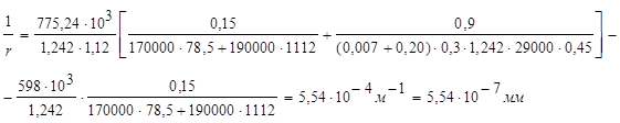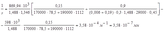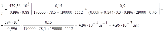 Значения этих кривизн определяются при отсутствии трещин в растянутой зоне согласно указаниям п. 4.27-4.29[4], а при наличии трещин согласно п.4.30-4.32[4]. В нашем примере из таблицы 2 и 6 следует, что при действии момента Сечение 0-0