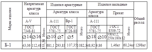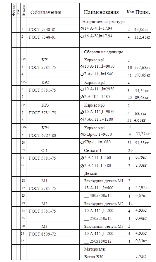 Рисунок 5. Армирование двутавровой балки и отдельные арматурные изделия Таблица 7