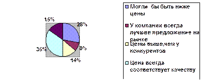 31 предприятие знакомо с продукцией ОАО "Литий", что составляет 88%, следовательно, остальные 12% не знакомы. . На вопрос о том, легко ли дозвонится до компании по телефону, 88% респондентов ответило – да, легко, 17% - приходится звонить несколько раз, а 5% сказали, что очень трудно дозвониться. На вопрос о типе контактов выяснилось, что 50% предприятий предпочитают использовать факс, 35% - электронную почту и 15% - телефон. Оценивая профессиональный уровень сотрудников, респонденты ответили следующим образом: 67% четко и ясно отвечают на вопросы или оперативно переадресовывают к нужному сотруднику, 28% - иногда не могут сразу разобраться в вопросе, но потом находят способ, как помочь, 5% - часто не могут ответить на вопрос и не знают, к кому переадресовать. Из них 75% работников очень вежливы и дружелюбны, 23% - тон общения сотрудников нейтральный и всего 2% могут быть грубы и невнимательны. Анализ ответов об уровне цен на стеклотару можно проследить на рис 7: